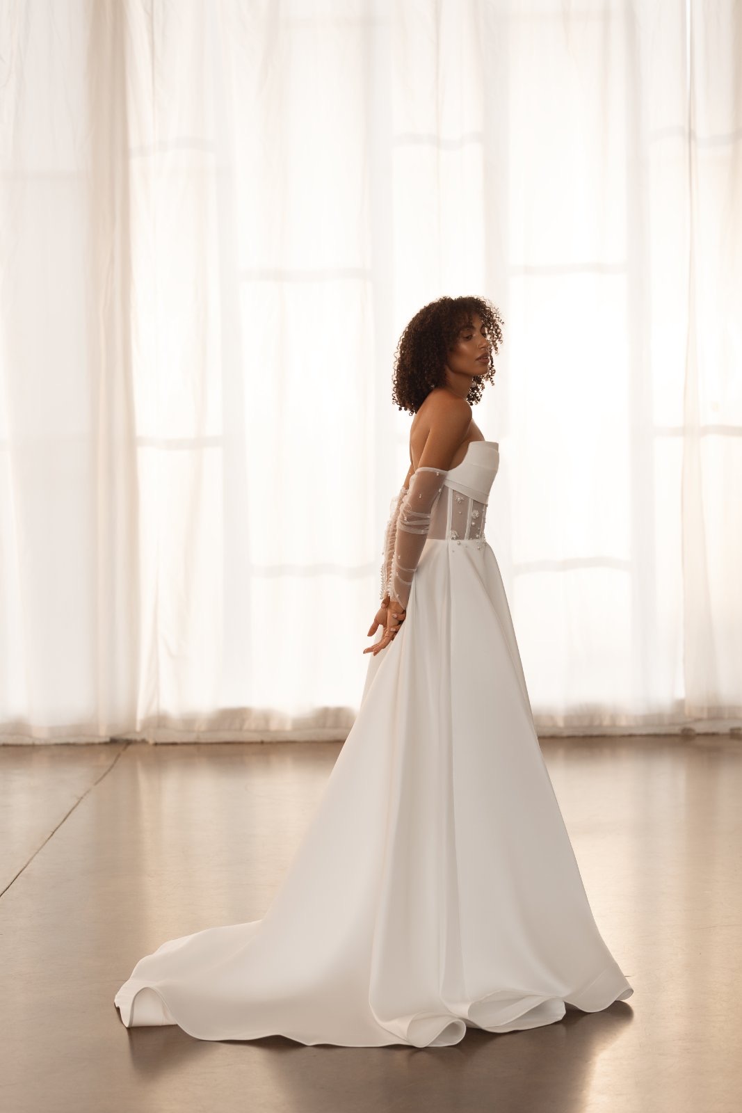 Az Essential kollekcióban szereplő ruhákra jellemző a fiatalos szabásvonal, a trendkövető és formabontó design, valamint az a különleges stílus, ami azoknak a menyasszonyoknak szól, akik bátran vállalják egyéniségüket, és ragyogni szeretnének az esküvőjükön – nem másokhoz hasonlóan, hanem önmagukat megmutatva!